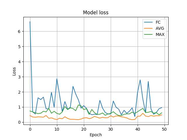可以看出,首先GMP在本模型中表现太差,不值一提;而FC在前40次迭代时表现尚可,但到了40次后发生了剧烈变化,出现了过拟合现象(运行20次左右时的模型相对较好,但准确率不足70%,模型还是很差);三者中表现最好的是GAP,无论从准确度还是损失率,表现都较为平稳,抗过拟合化效果明显(但最终的准确度70%,模型还是不行)。