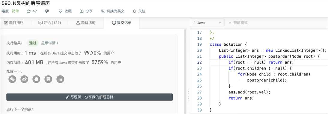 思路: 迭代进行了 NRL 的先序 迭代 遍历,然后reverse NRL 到 LRN 就是 要求的后序遍历了啊。ok