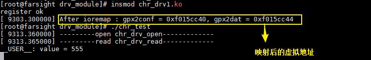 1 //去映射--解除映射 2 void iounmap(void __iomem *addr) 3 //参数:映射后的虚拟地址