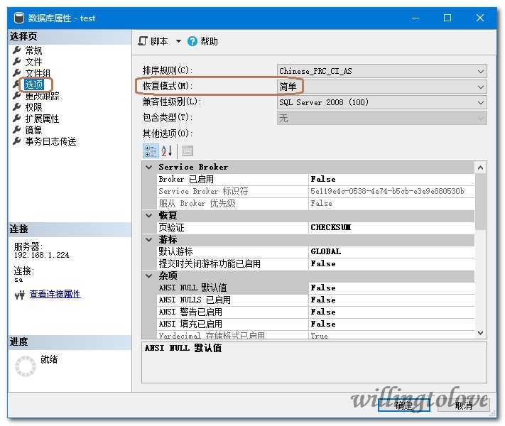 ALTER DATABASE {DBName} SET RECOVERY SIMPLE --简单模式