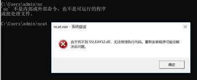 Windows下载老师上传的附件解压后运行程序闪退,复制到system32文件夹后cmd输入nc显示【不是内部或外部命令,也不是可运行的命令】,输入ncat则有以下显示:
