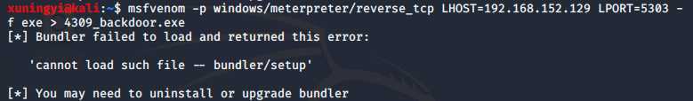 输入 sudo gem install bundler:1.17.3 ,再输入上面的命令,可以执行了,文件管理器中可以看到后门程序已经生成了