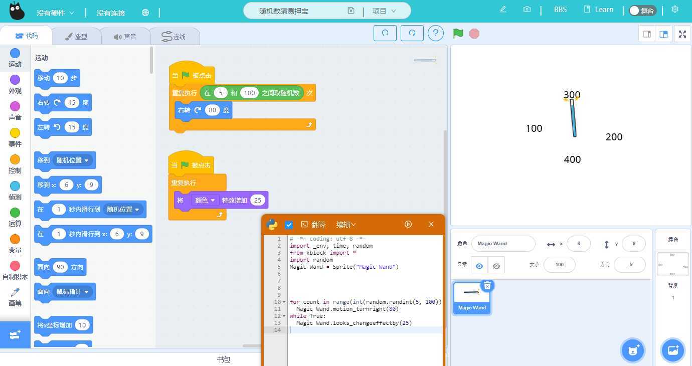 图形化编程娱乐于教,Kittenblock实例,随机数猜测押宝