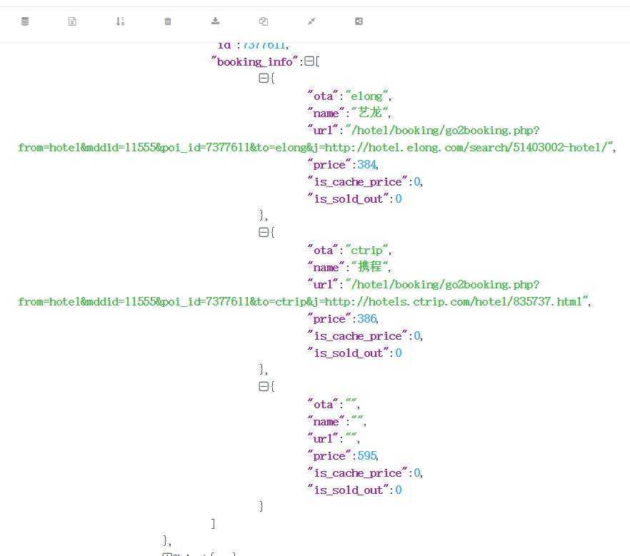 1 import requests 2 from bs4 import BeautifulSoup 3 import pandas as pd 4 import numpy as np 5 import json 6 headers = {‘user-agent‘: ‘Mozilla/5.0 (Windows NT 10.0; Win64; x64) AppleWebKit/537.36 (KHTML, like Gecko) Chrome/78.0.3904.108 Safari/537.36‘} #请求头的问题 7 url=‘http://www.mafengwo.cn/rest/hotel/booking/?page%5Bmode%5D=random_next&page%5Bnum%5D=15&page%5Bno%5D=1&filter%5Bpoi_ids%5D=7377611S17199S97620S97635S97609S9161215S97581S8346673S35108740S6959583S7859685S7377583S7115430S15846780S9161213&filter%5Bcheck_in%5D=2020-04-26&filter%5Bcheck_out%5D=2020-04-27‘ 8 response=requests.get(url,headers=headers) #获取url以及访问网站 9 10 result=response.text #使用response对象中的属性,获取响应的内容,类型:字符串 11 result_dict=json.loads(result) #使用json模块将str类型变为python中的字典类型 12 data_list=result_dict[‘data‘][‘list‘] #获取data数据 13 hotel_price=[] 14 for i in data_list: 15 price_list=i[‘booking_info‘] 16 for j in price_list: 17 price=j[‘price‘] 18 hotel_price.append(price) 19 #因为有三种不同的价格,所以这里全都给出 20 first_price=hotel_price[::3] 21 second_price=hotel_price[1::3] 22 third_price=hotel_price[2::3] 23 third_price.append(220) 24 25 26 r = requests.get(‘http://www.mafengwo.cn/search/q.php?q=泉州&t=hotels&seid=&mxid=&mid=&mname=&kt=1‘, headers = kv) 27 #print(r.text) 页面结构和内容 28 r.raise_for_status() 29 soup = BeautifulSoup(r.content, ‘html.parser‘) #对获得的内容进行处理 30 hotel_names = soup.find_all(‘h3‘) 31 name=[] 32 for hotel_name in hotel_names: #对获取的酒店信息进行处理 33 hotel_namel=hotel_name.text.strip() 34 name.append(hotel_namel) 35 #通过索引设置排名 36 index=[‘1‘,‘2‘,‘3‘,‘4‘,‘5‘,‘6‘,‘7‘,‘8‘,‘9‘,‘10‘,‘11‘,‘12‘,‘13‘,37 ‘14‘,‘15‘] 38 hotel={‘酒店名称‘:name,"艺龙价格":first_price,‘携程价格‘:second_price,39 "有鱼订房价格":third_price} 40 hotell=pd.DataFrame(hotel,index) #将数据整合 41 print(hotell)