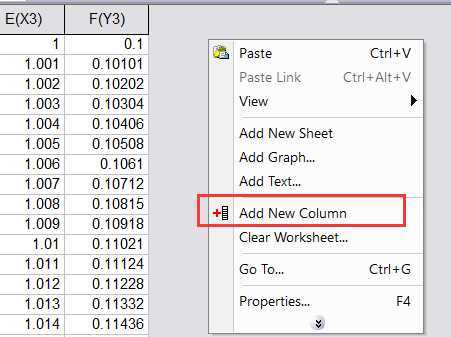 新增的列默认为Y(对应纵坐标),可以选中新增列右键,选择Set As-->X(对应横坐标)。