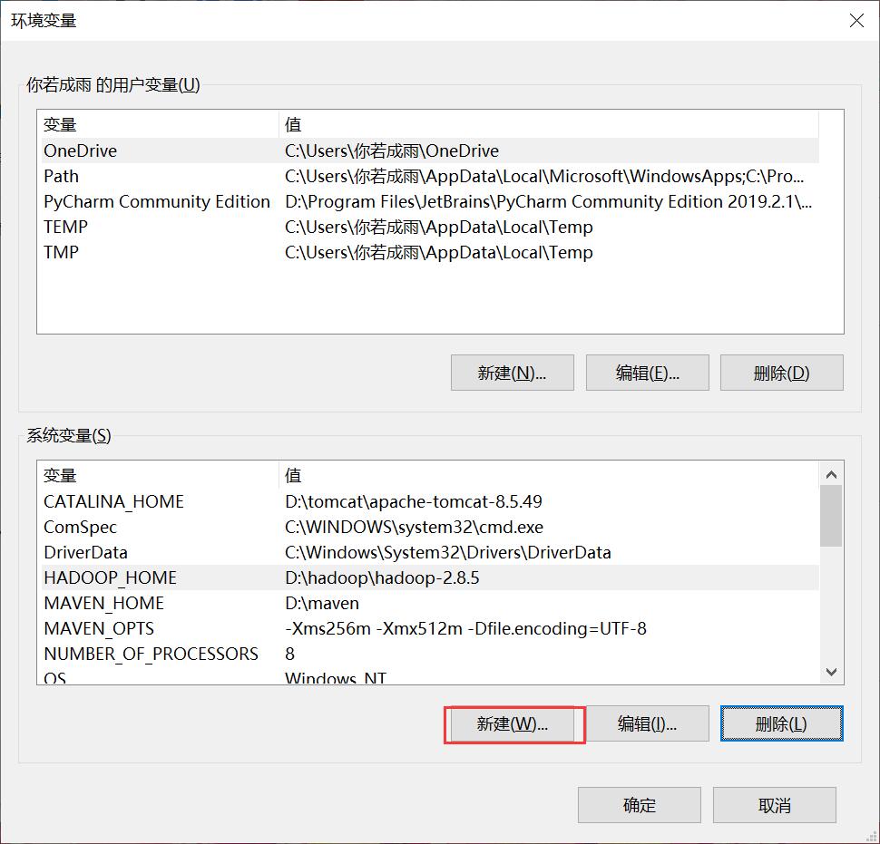 进入环境变量,开始配置jdk环境变量,在“系统变量”中,点击“新建”