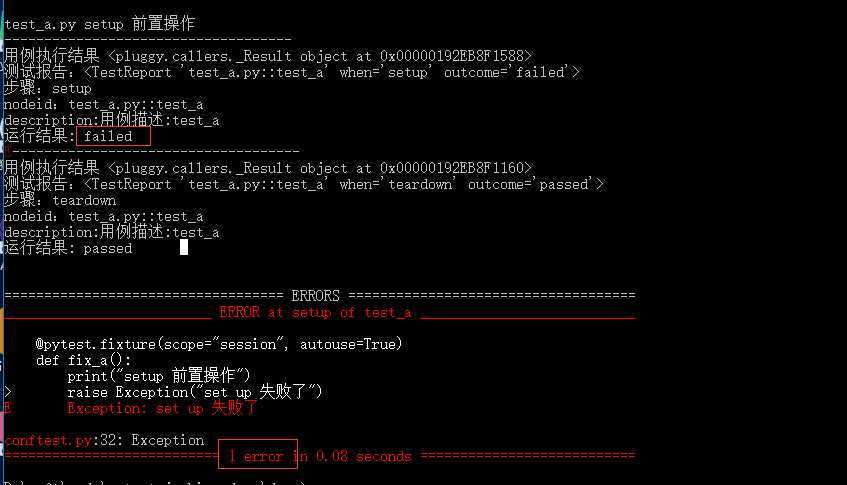 当setup执行失败了,setup的执行结果的failed,后面的call用例和teardown都不会执行了