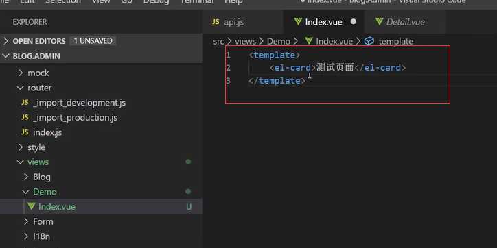 views下新建Demo文件夹,然后在文件夹下新建Index.vue