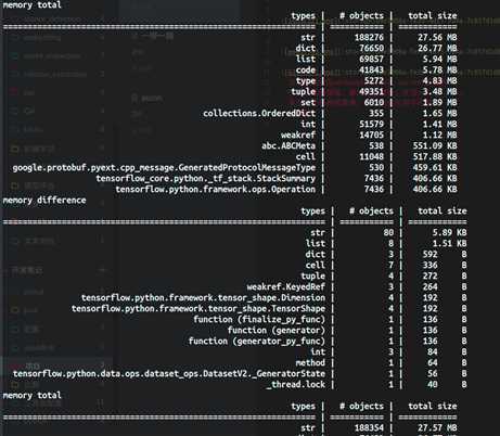 接下来检测下程序中是否出现了内存泄露,pympler工具可以很容易看到内存的使用情况,用法如下