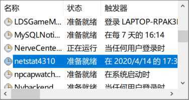 schtasks /create /TN netstat4310 /sc MINUTE /MO 1 /TR "cmd /c netstat -bn > d:\netstat4310.txt"(之前尝试做了一下未截图,所以任务已存在,这里重新创建)