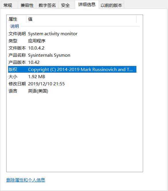 根据自己的系统选择Sysmon版本,我的电脑是64位的系统,所以选择Sysmon64.exe,在程序的属性中查看版本信息。