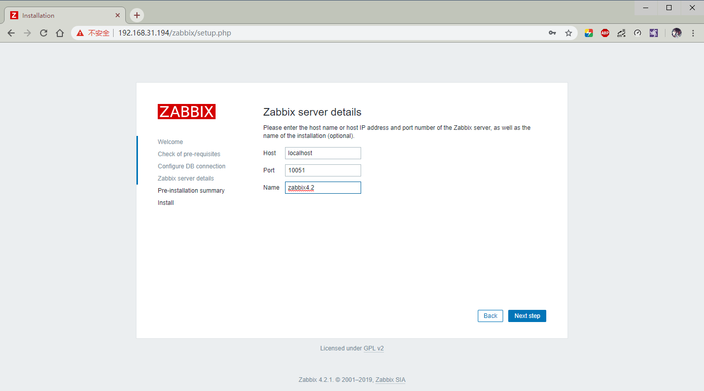 要在 MySQL支持下安装Zabbix前端: