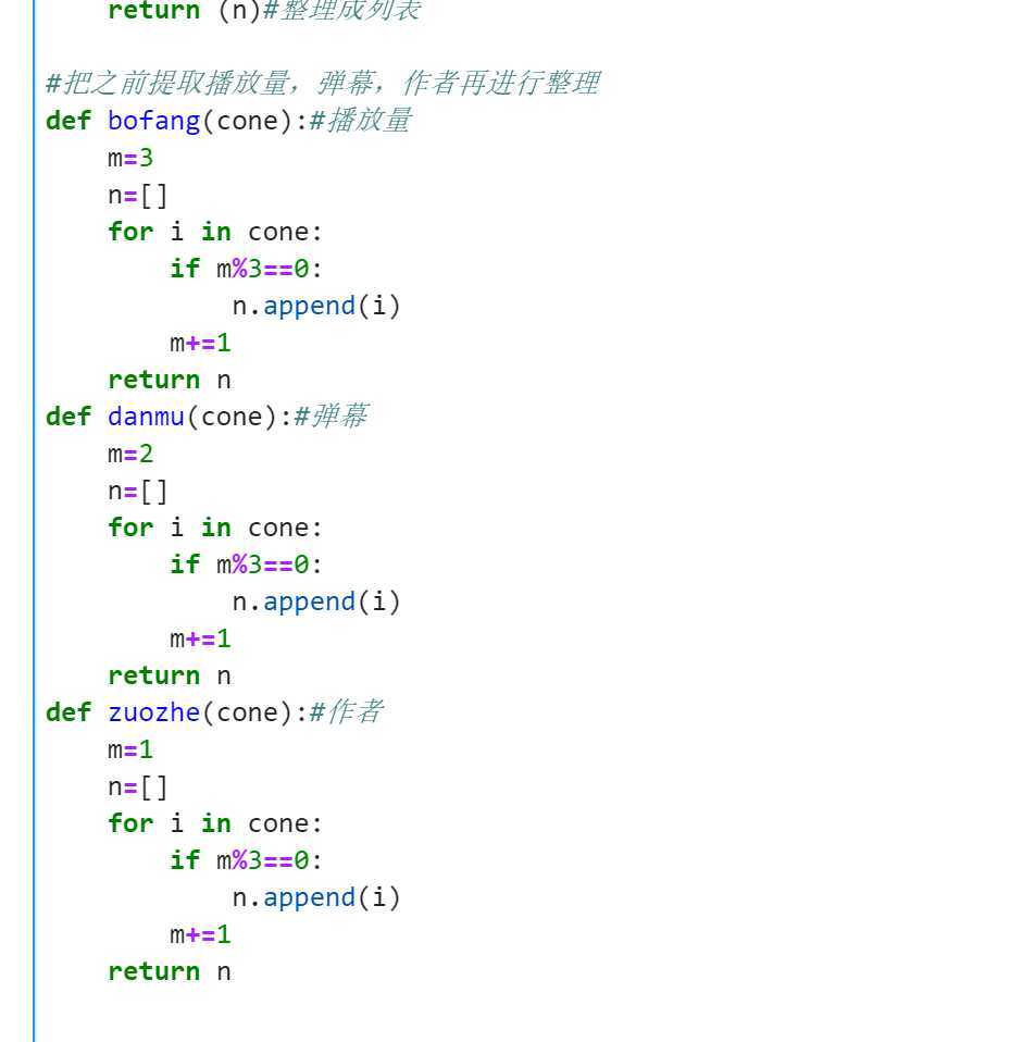 import requests import bs4 import re import matplotlib.pyplot as plt import seaborn as sns import pandas as pd plt.rcParams[‘font.sans-serif‘]=[‘SimHei‘]#用来正常显示中文 plt.rcParams[‘axes.unicode_minus‘]=False#用来正常显示负号 def get_url(url):#获取网页内容 #伪装用户 headers = {‘User-Agent‘: ‘Mozilla/5.0 (Windows NT 10.0; WOW64) AppleWebKit/537.36 (KHTML, like Gecko) Chrome/70.0.3538.25 Safari/537.36 Core/1.70.3706.400 SLBrowser/10.0.4040.400‘} try: #尝试获取网页 f = requests.get(url,headers = headers) #如果状态码不是200则引发异常 f.raise_for_status() #编码 f.encoding = f.apparent_encoding #返回获取的网页 return f.text except: #状态码不是200打印产生异常 print(‘产生异常‘) def bs(text): #将读取到的网页解析 soup = bs4.BeautifulSoup(text,‘html.parser‘) return soup def cont_ent(soup): #提取排行前100的标题 m = soup.find_all(‘a‘,class_="title") n=[] for i in m: n.append(i.text) return (n)#整理成列表 def cont_ent2(soup): #提取播放量,弹幕,作者 x = soup.find_all(‘span‘,class_="data-box") n=[] for i in x: n.append(i.text) return (n)#整理成列表 def cont_ent3(soup): #提取综合得分 k = soup.find_all(‘div‘,class_="pts") n=[] for i in k: #因为分数没有过千万的所以可以搜集千万以内的数字 c=re.search(‘\d?\d?\d?\d?\d?\d?\d?\d?‘,i.text) n.append(eval(c.group())) return (n)#整理成列表 #把之前提取播放量,弹幕,作者再进行整理 def bofang(cone):#播放量 m=3 n=[] for i in cone: if m%3==0: n.append(i) m+=1 return n def danmu(cone):#弹幕 m=2 n=[] for i in cone: if m%3==0: n.append(i) m+=1 return n def zuozhe(cone):#作者 m=1 n=[] for i in cone: if m%3==0: n.append(i) m+=1 return n def main(): #哔哩哔哩热搜视频排行链接 url = ‘https://www.bilibili.com/ranking?‘ #获取网页 some = get_url(url) #解析网页 soup = bs(some) ‘‘‘with open(‘try2.txt‘,‘w‘,encoding=‘utf-8‘) as f: f.write(soup.text)#测试写代码过程中是否出错‘‘‘ #数据处理 #提取标题 title = cont_ent(soup) #提取播放量,弹幕,作者 cone = cont_ent2(soup) #提取综合得分 score = cont_ent3(soup) ‘‘‘ with open(‘title.txt‘,‘w‘,encoding=‘utf-8‘) as f: for i in title: f.write(str(title.index(i)+1)+‘.‘) f.write(i) f.write(‘\n‘) with open(‘cone.txt‘,‘w‘,encoding=‘utf-8‘) as f: for i in cone: f.write(i) f.write(‘\n‘) with open(‘score.txt‘,‘w‘,encoding=‘utf-8‘) as f: for i in score: f.write(i) f.write(‘\n‘) ‘‘‘ #导出数据查看是否有误 bfl = bofang(cone) dm = danmu(cone) zz = zuozhe(cone) df = pd.DataFrame({‘排名‘:range(1,101),‘标题‘:title,‘播放量‘:bfl,‘弹幕量‘:dm,‘作者‘:zz,‘综合得分‘:score}) df.to_excel(‘b站热门视频排行前100.xlsx‘) #因数据太多所以挑排名前几的作图 #柱状图 plt.bar(range(1,21),score[:20]) plt.xlabel(‘排名‘) plt.ylabel(‘综合得分‘) plt.title(‘前几名的综合得分柱状图‘) plt.show() #散点图 plt.scatter(range(1,21),score[:20]) plt.xlabel(‘排名‘) plt.ylabel(‘综合得分‘) plt.title(‘前几名的综合得分柱状图‘) plt.show() #回归分析 file_path = "b站热门视频排行前100.xlsx" dataf = pd.read_excel(file_path) sns.lmplot(x=‘排名‘,y=‘综合得分‘,data=dataf) main()
