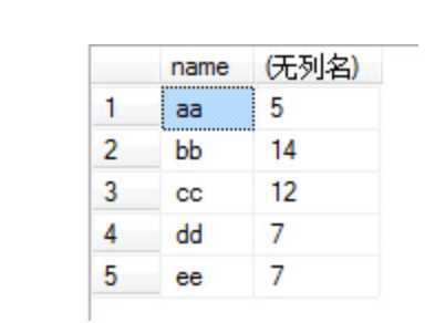 (4)例如我们执行select name,sum(number) from test group by name,那么sum就对虚拟表3的number列的每个单元格进行sum操作,例如对name为aa的那一行的number列执行sum操作,即2+3,返回5,最后执行结果如下: