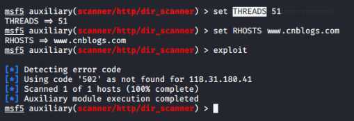 use auxiliary/scanner/http/dir_scanner //进入该辅助模块