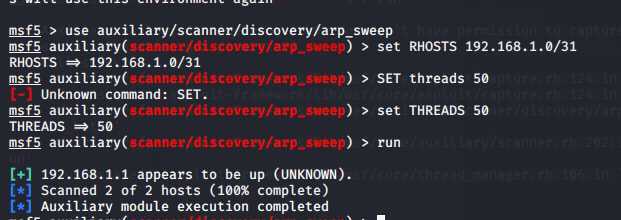 nmap -sn 192.168.1.0/31探测某网段活跃主机