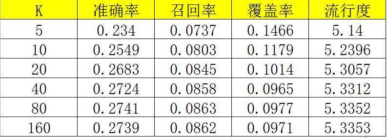 1 import numpy as np 2 import pandas as pd 3 import math 4 from collections import defaultdict 5 from operator import itemgetter 6 7 np.random.seed(1) 8 9 10 class UserCF(object): 11 12 def __init__(self): 13 self.train_set = {} 14 self.test_set = {} 15 self.movie_popularity = {} 16 17 self.tot_movie = 0 18 self.W = {} # 相似度矩阵 19 20 self.K = 20 # 最接近的K个用户 21 self.M = 10 # 推荐电影数 22 23 def split_data(self, data, ratio): 24 ‘‘‘ 按ratio的比例分成训练集和测试集 ‘‘‘ 25 for line in data.itertuples(): 26 user, movie, rating = line[1], line[2], line[3] 27 if np.random.random() < ratio: 28 self.train_set.setdefault(user, {}) 29 self.train_set[user][movie] = int(rating) 30 else: 31 self.test_set.setdefault(user, {}) 32 self.test_set[user][movie] = int(rating) 33 print(‘数据预处理完成‘) 34 35 def user_similarity(self): 36 ‘‘‘ 计算用户相似度 ‘‘‘ 37 movie_users = {} 38 for user, items in self.train_set.items(): 39 for movie in items.keys(): 40 if movie not in movie_users: 41 movie_users[movie] = set() 42 movie_users[movie].add(user) 43 if movie not in self.movie_popularity: # 用于后面计算新颖度 44 self.movie_popularity[movie] = 0 45 self.movie_popularity[movie] += 1 46 print(‘倒排表完成‘) 47 self.tot_movie = len(movie_users) # 用于计算覆盖率 48 49 C, N = {}, {} # C记录u,v之间给相同电影打分的数量, N记录用户打分的电影数量 50 for movie, users in movie_users.items(): 51 for u in users: 52 C.setdefault(u, defaultdict(int)) 53 N.setdefault(u, 0) 54 N[u] += 1 55 for v in users: 56 if u == v: 57 continue 58 C[u][v] += 1 59 60 train_user_num = len(self.train_set) # 训练集用户数 61 count = 1 62 for u, related_users in C.items(): 63 print(‘\r相似度计算进度:{:.2f}%‘.format(count * 100 / train_user_num), end=‘‘) 64 count += 1 65 self.W.setdefault(u, {}) 66 for v, cuv in related_users.items(): 67 self.W[u][v] = float(cuv) / math.sqrt(N[u] * N[v]) 68 print(‘\n相似度计算完成‘) 69 70 def recommend(self, u): 71 ‘‘‘ 通过与u最相似的K个用户推荐M部电影 ‘‘‘ 72 rank = {} 73 user_movies = self.train_set[u] 74 for v, similarity in sorted(self.W[u].items(), key=itemgetter(1), reverse=True)[0:self.K]: 75 for movie, rating in self.train_set[v].items(): 76 if movie in user_movies: 77 continue 78 rank.setdefault(movie, 0) 79 rank[movie] += similarity * rating 80 return sorted(rank.items(), key=itemgetter(1), reverse=True)[0:self.M] 81 82 def evaluate(self): 83 ‘‘‘ 评测算法 ‘‘‘ 84 hit = 0 85 ret = 0 86 rec_tot = 0 87 pre_tot = 0 88 tot_rec_movies = set() # 推荐电影 89 for user in self.train_set: 90 test_movies = self.test_set.get(user, {}) 91 rec_movies = self.recommend(user) 92 for movie, pui in rec_movies: 93 if movie in test_movies.keys(): 94 hit += 1 95 tot_rec_movies.add(movie) 96 ret += math.log(1+self.movie_popularity[movie]) 97 pre_tot += self.M 98 rec_tot += len(test_movies) 99 precision = hit / (1.0 * pre_tot) 100 recall = hit / (1.0 * rec_tot) 101 coverage = len(tot_rec_movies) / (1.0 * self.tot_movie) 102 ret /= 1.0 * pre_tot 103 print(‘precision=%.4f‘ % precision) 104 print(‘recall=%.4f‘ % recall) 105 print(‘coverage=%.4f‘ % coverage) 106 print(‘popularity=%.4f‘ % ret) 107 108 109 if __name__ == ‘__main__‘: 110 data = pd.read_csv(‘u.data‘, sep=‘\t‘, names=[‘user_id‘, ‘item_id‘, ‘rating‘, ‘timestamp‘]) 111 usercf = UserCF() 112 usercf.split_data(data, 0.7) 113 usercf.user_similarity() 114 usercf.evaluate()