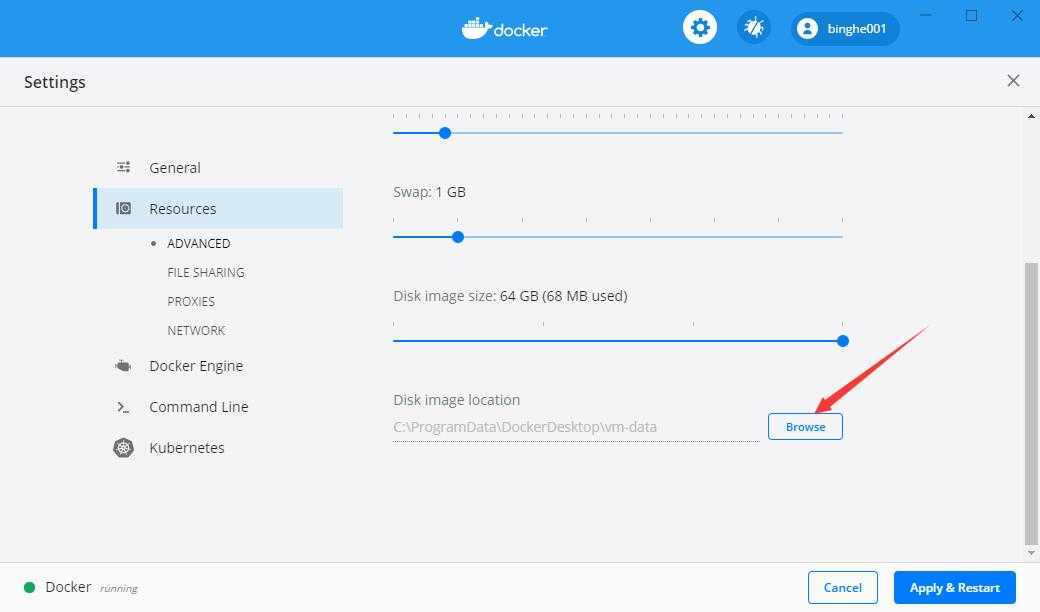 6.选择完成后,点击右下角的Apple&Restart按钮重启Docker。