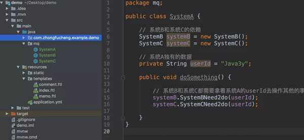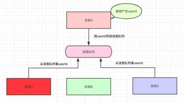 然后,公司招来一个大佬,大佬经过几天熟悉,上来就说:将系统A的userId写到消息队列中,这样系统A就不用经常改动了。为什么呢?下面我们来一起看看:
