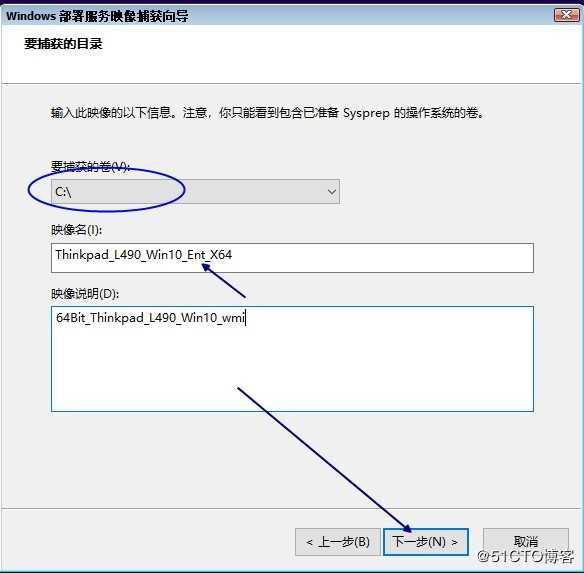 如果之前忘记在样板机系统里执行sysprep,此时在:“要捕获的卷”里不会出现C盘,此时可以采用命令行来进行捕获,方法:在上边个UI界面上,按:Shift+F10组合键,进入命令行: