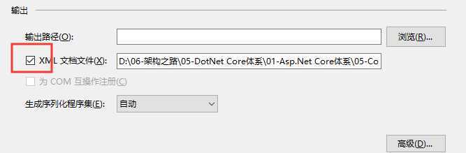 (1).选中当前项目,右键属性,进入“生成”页面,将“xml文档文件”的选项卡勾上。
