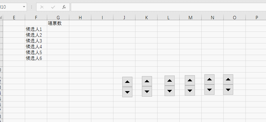 依此类题,选中控件,Ctrl+C/Ctrl+V复制出剩下的五个控件,然后将其单元格链接分别对应后几个候选人对应的单元格。如下图动图所示。