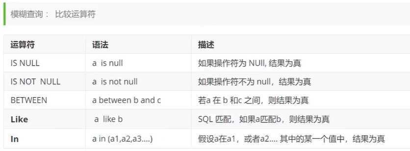 in 在什么什么里面 (in的是具体的一个或多个值 不能模糊 不能用%_)