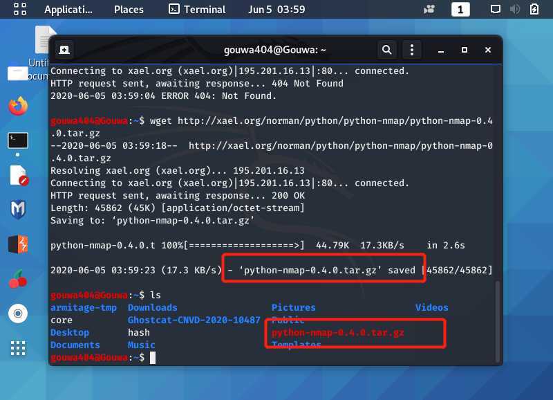 键入命令:wget http://xael.org/norman/python/python-nmap/python-nmap-0.4.0.tar.gz