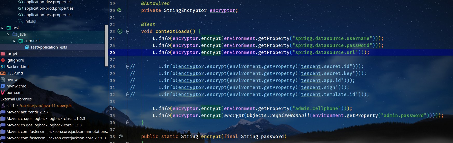 另外笔者已写好了测试文件,直接首先替换掉配置文件原来的密文,填上明文重新加密: