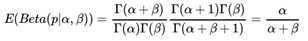 这个式子完全符合我们在上一节好人坏人例子里的情况,我们的认知会把数据里的好人坏人数分别加到我们的先验分布上,得到后验分布,Beta分布 Beta(p|α, β)的期望:
