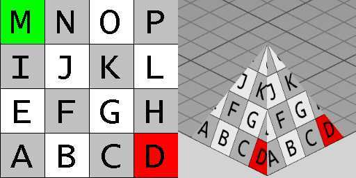 如图所示,金字塔位于其自身的放置坐标系内。原点是位于XY平面的底部矩形的中心。顶点位于正z轴上[0,0,Height]。