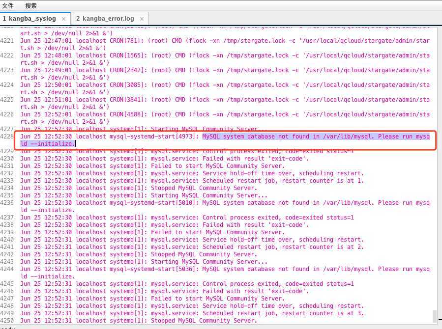 接下来就要上大招了,查看系统日志,如下图,发现需要重新初始化mysql