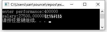 salary = salary1 + (I - 100000) * 0.075;//多出10万的按比例计算,加上10w的奖金