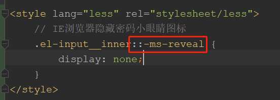 IE浏览器,当input输入框type="password"时,有个默认的密码显隐的小眼睛图标,如图,不友好,要他消失! 因为用的是elment的el-input,所有要定位到该input框,覆盖修改 如此,再也不用看到小眼睛了,开不开心!