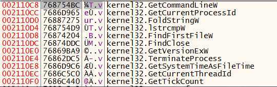 此处就是10c8+210000 = 2110c8即可看到导入的DLL的函数地址.