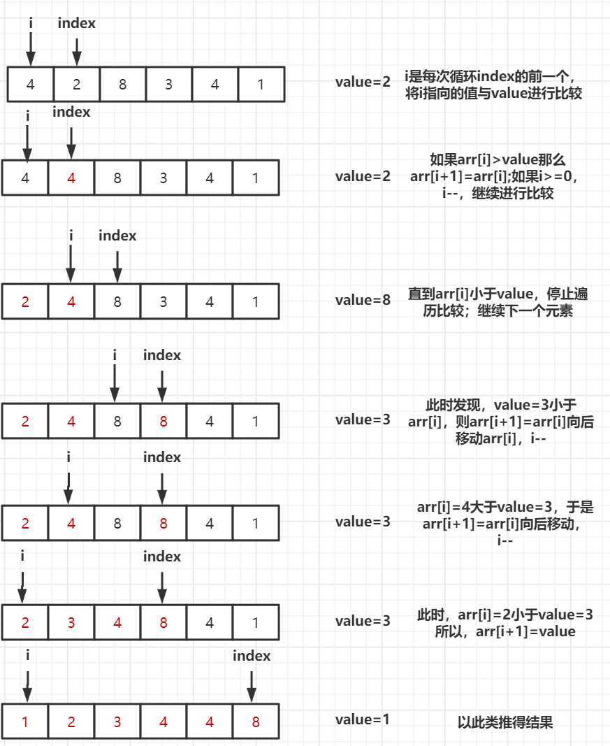 7 insertIndex = i - 1;// 表示要与当前数值进行比较的值的下标