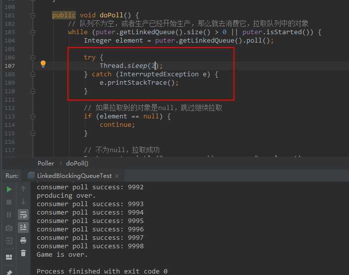 我们只需要给消费类加一点点的休眠时间,生产者就能先完成任务,消费者随后也完成了消费。