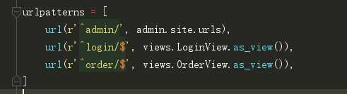 url(r‘^pro/login/$‘, views.ProLoginView.as_view()), url(r‘^pro/order/$‘, views.ProOrderView.as_view()),