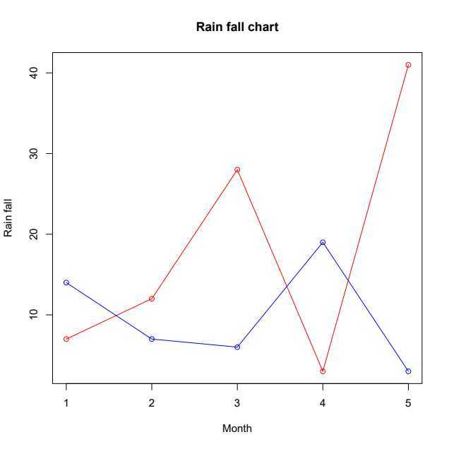 如果需要在同一个图中绘制多条折线,需要使用lines(),参数与plot类似。