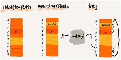 - 但是,如果这个空闲位置是后来删除的,就会导致原来的查找算法失效。本来存在的数据,会被认定为不存在。