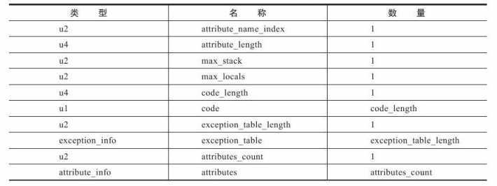 方法表集合的表结构和字段表结构差不多,仅在访问标志和属性表集合有所区别