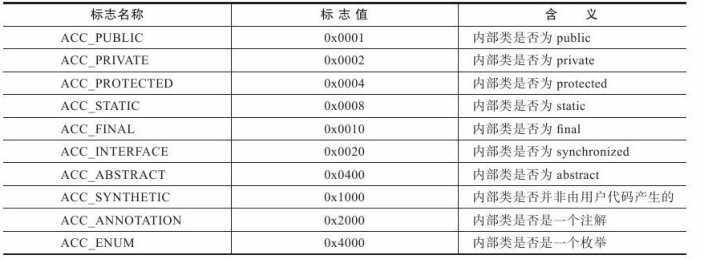 inner_class_access_flags:内部类的访问标志,类似于access_flags,取值范围如下图所示: