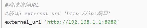 配置文件里面的 external_url 修改为本机的IP地址加上端口 即可 ,我们上面开的端口是8077,改成 http://192.168.1.44:8087