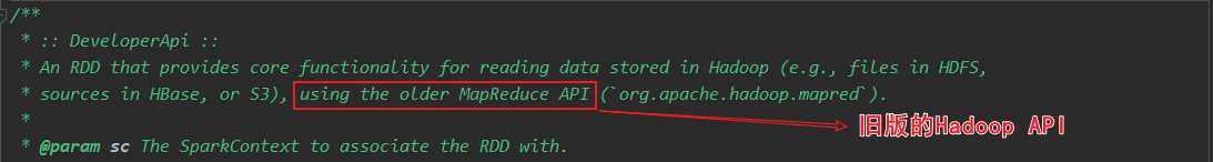 关于HadoopRDD的官方介绍,使用的是旧版的hadoop api