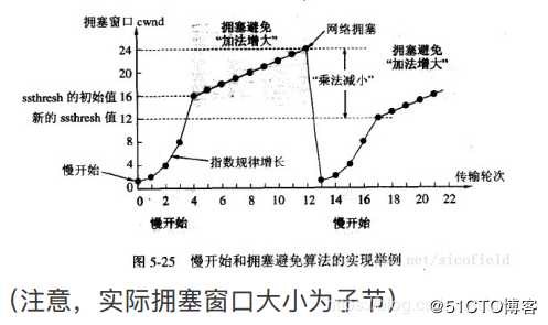 拥塞避免算法让拥塞窗口缓慢增长,即每经过一个往返时间RTT就把发送方的拥塞窗口cwnd加1,而不是加倍,这样拥塞窗口按照线性规律缓慢增长。无论是在慢开始阶段还是在拥塞避免阶段,只要发送方判断网络出现拥塞(其根据就是没有收到确认,虽然没有收到确认可能是其他原因的分组丢失,但是因为?法判定,所以都当作拥塞处理),就把慢开始门限设置为出现拥塞时的发送窗口的一半,然后把拥塞窗口设置为1,执行慢开始算法: