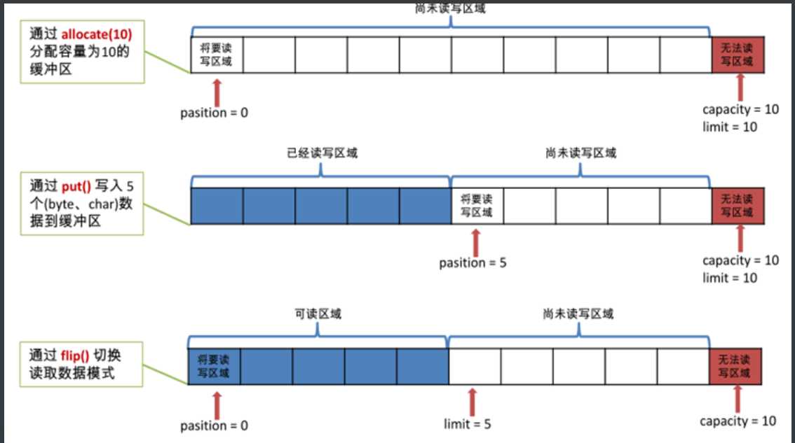 容量 (capacity) :表示 Buffer 最大数据容量,缓冲区容量不能为负,并且创建后不能更改。