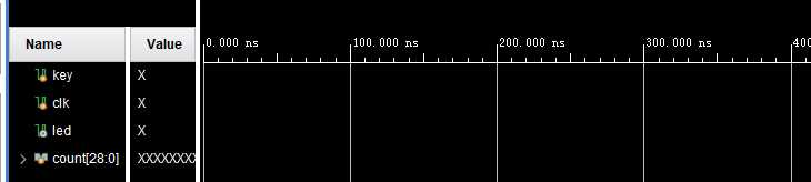 1 `timescale 1ns / 1ps 2 ////////////////////////////////////////////////////////////////////////////////// 3 // Company: 4 // Engineer: 5 // 6 // Create Date: 2020/08/17 18:02:59 7 // Design Name: 8 // Module Name: led 9 // Project Name: 10 // Target Devices: 11 // Tool Versions: 12 // Description: 13 // 14 // Dependencies: 15 // 16 // Revision: 17 // Revision 0.01 - File Created 18 // Additional Comments: 19 // 20 ////////////////////////////////////////////////////////////////////////////////// 21 22 23 module led( 24 input key, 25 input clk, 26 output reg led 27 ); 28 29 reg [28:0] count; 30 31 always @(posedge clk) 32 begin 33 if(key == 0) 34 count <= 29‘b0; 35 else 36 if(count == 20) 37 count <= 29‘b0; 38 else 39 count <= count + 1; 40 end 41 42 always@(posedge clk) 43 begin 44 if(key == 0) 45 led <= 0; 46 else 47 if(count == 20) 48 begin 49 led <= ~led; 50 $display("at this moment, count is 20, led is %b, and will be changed to %b.", led, ~led); 51 end 52 else 53 led <= led; 54 end 55 endmodule