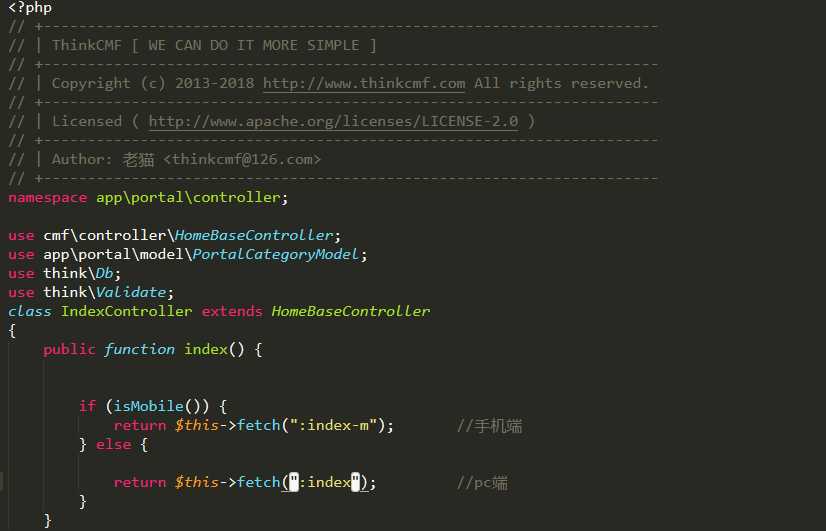 上图是未生成静态文件的控制器 我们官网是分为PC移动端两个模板的 所以PC和移动端都需要