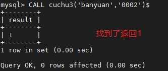 CALL cuchu3(‘banyuan‘,‘0002‘)$