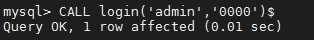 CREATE PROCEDURE storage4(IN username VARCHAR(20),IN PASSWORD VARCHAR(20))